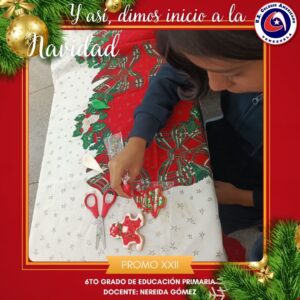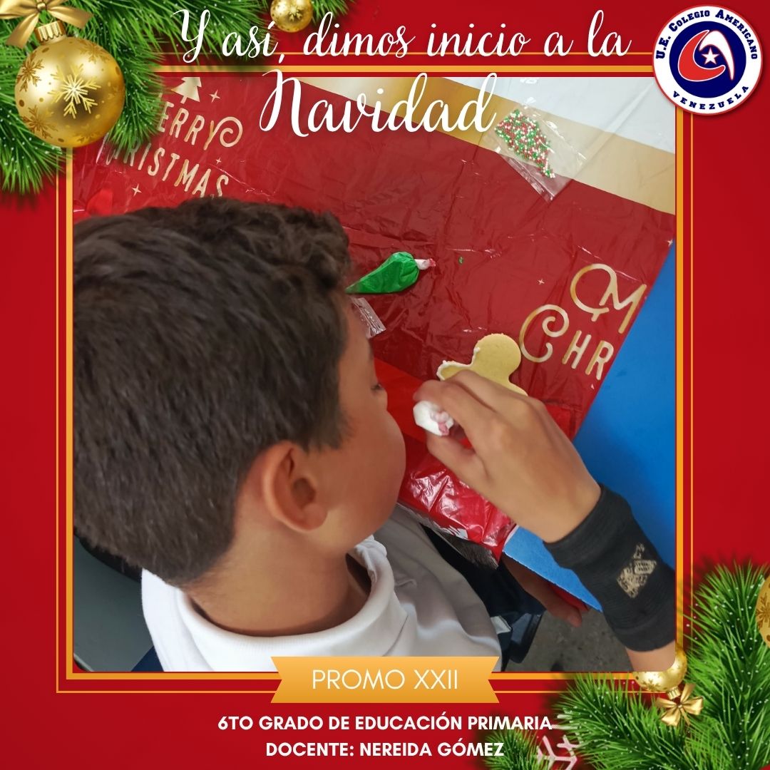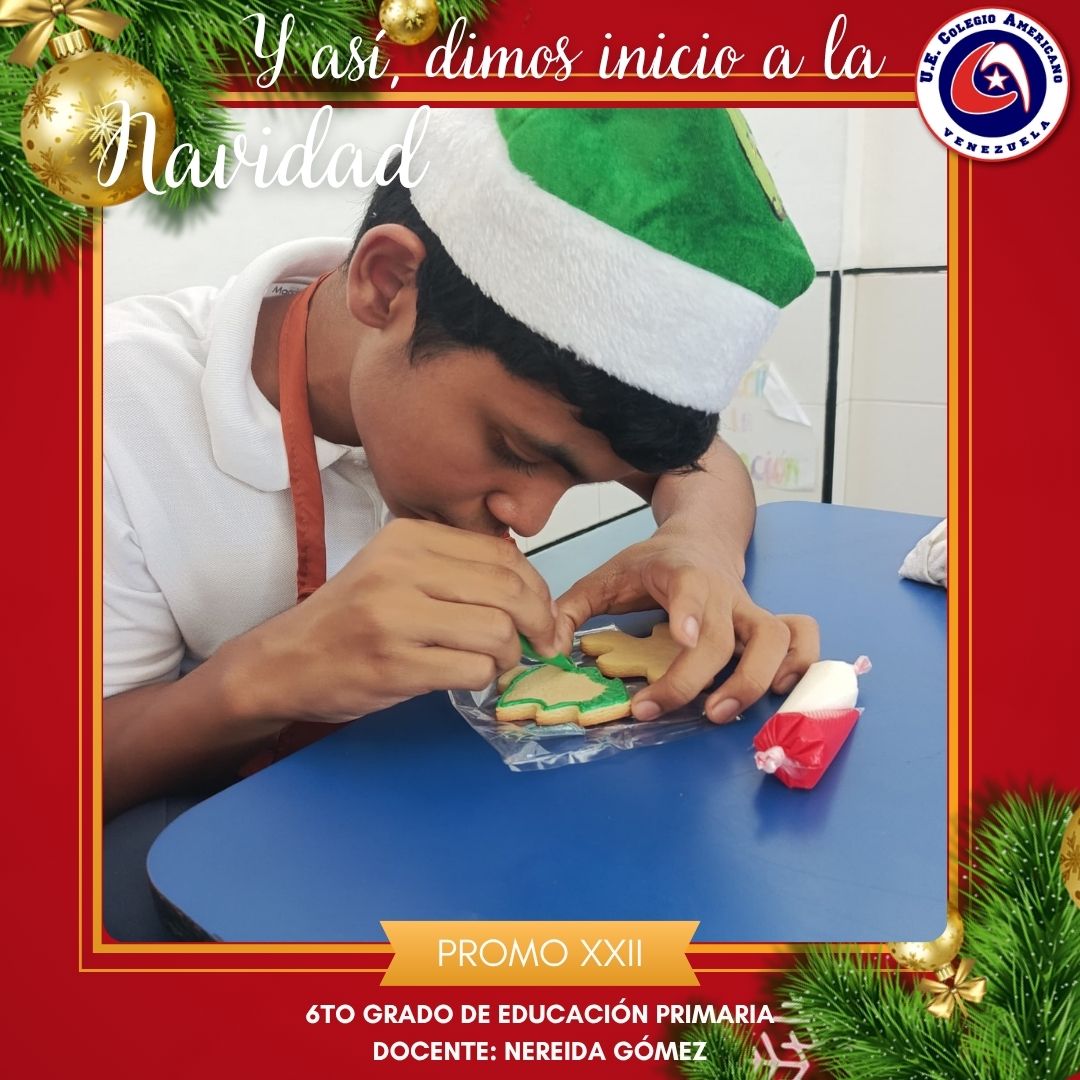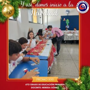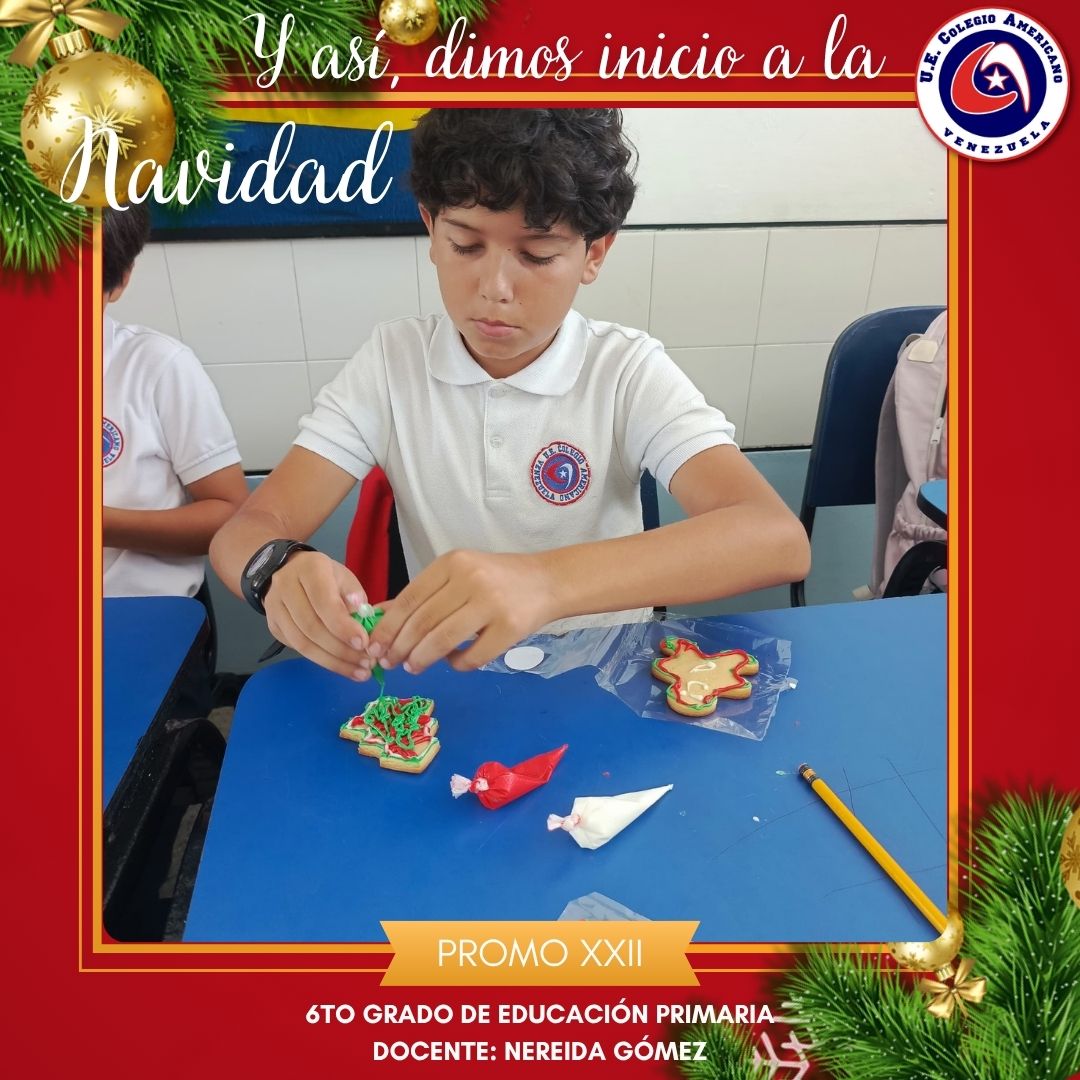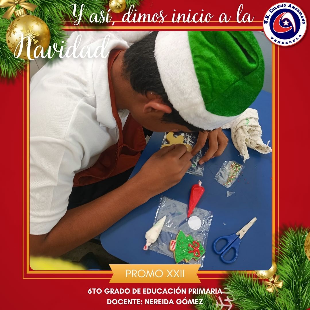 El día viernes 31 de octubre, se realizó en aula de los alumnos de 6to Grado de Educación Primaria, una actividad que marcó el inicio de la Navidad para Ellos. El Comité de la Promoción XXII de los estudiantes, organizó conjuntamente con su Docente, la Maestra Nereida Gómez, la adquisición de un kit de galletas de Navidad, en donde cada estudiante tenía la oportunidad de decorar dos galletas a su gusto. Actividad que representó en Ellos, la Ternura, Alegría y Unión.