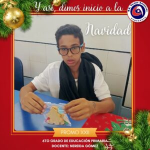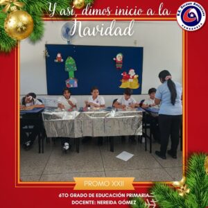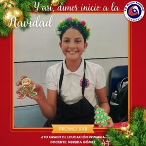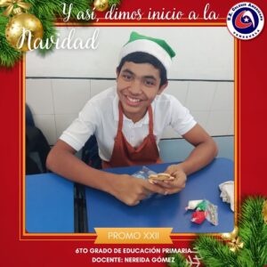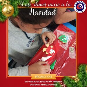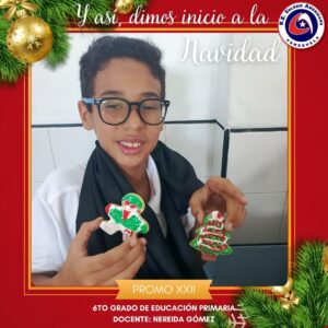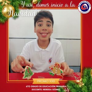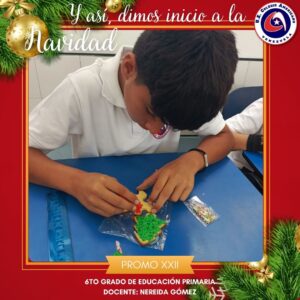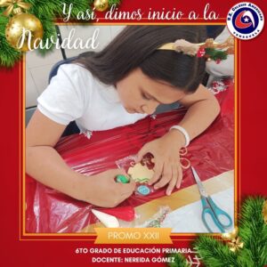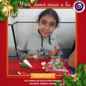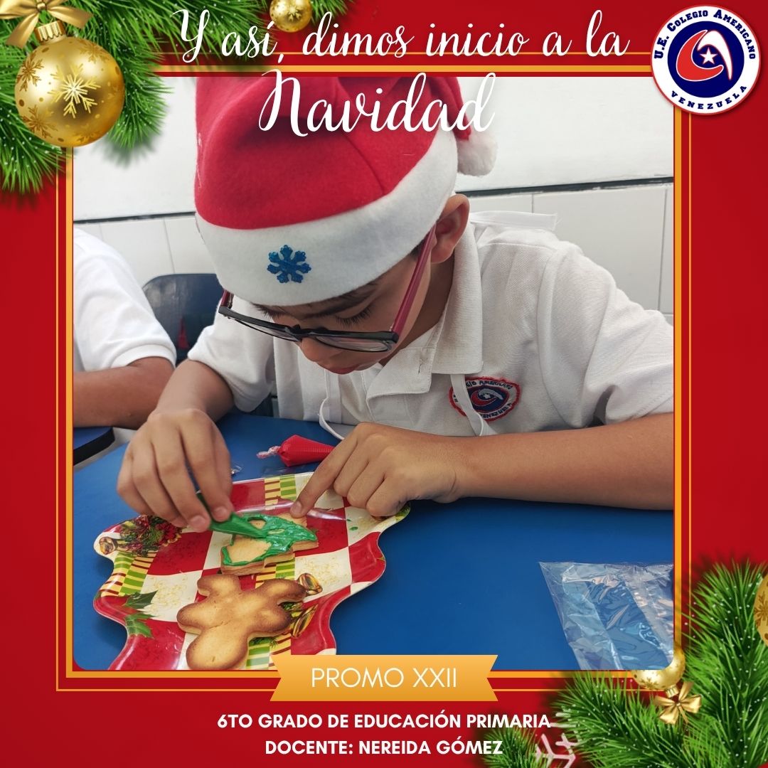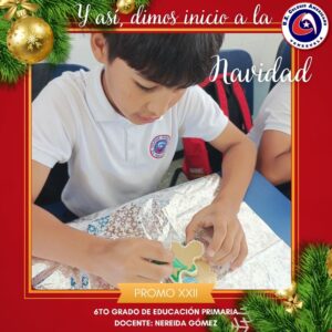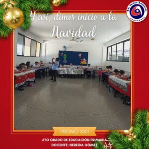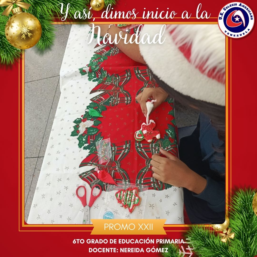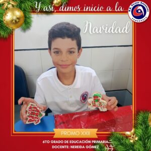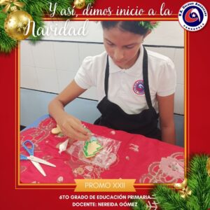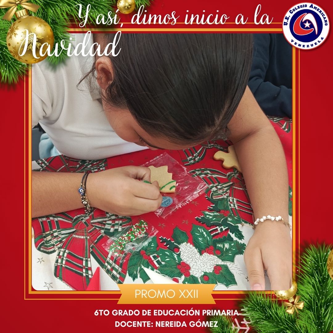 El día viernes 31 de octubre, se realizó en aula de los alumnos de 6to Grado de Educación Primaria, una actividad que marcó el inicio de la Navidad para Ellos. El Comité de la Promoción XXII de los estudiantes, organizó conjuntamente con su Docente, la Maestra Nereida Gómez, la adquisición de un kit de galletas de Navidad, en donde cada estudiante tenía la oportunidad de decorar dos galletas a su gusto. Actividad que representó en Ellos, la Ternura, Alegría y Unión.