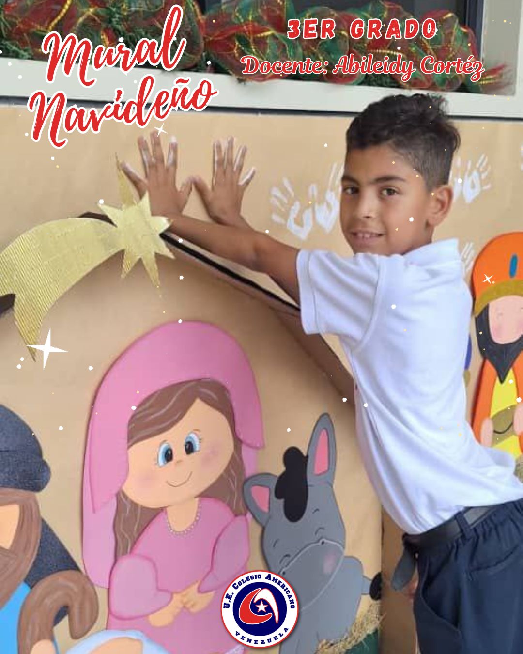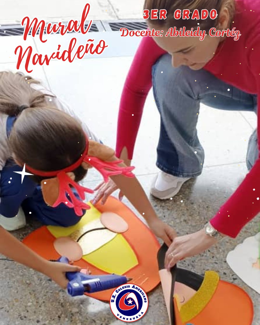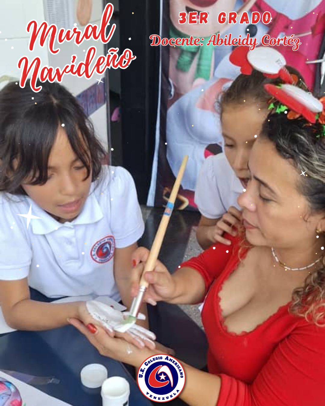 Los estudiantes de cada salón de clases en Educación Primaria, conjuntamente con su Maestra y un grupo de representantes, se unieron en la realización de un Mural Navideño. Dicha actividad es una gran oportunidad para fomentar valores como la unión, la generosidad y la creatividad, al mismo tiempo que se crean recuerdos inolvidables. Cada actividad navideña que se realiza en el salón de clases tiene el poder de enseñar importantes lecciones de vida a los más pequeños.