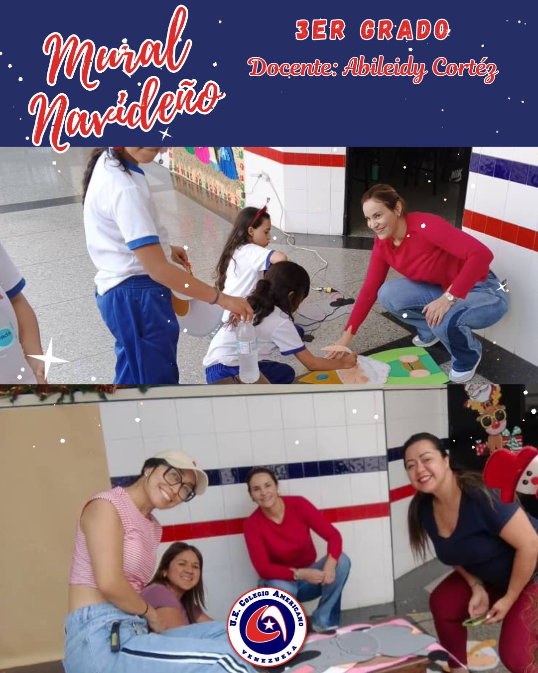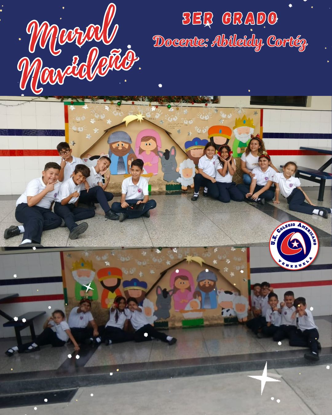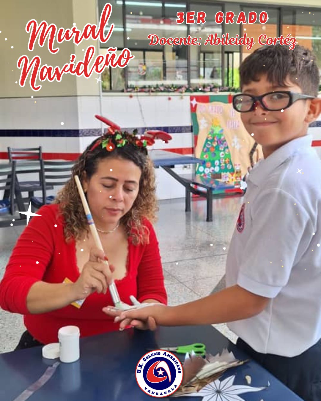 Los estudiantes de cada salón de clases en Educación Primaria, conjuntamente con su Maestra y un grupo de representantes, se unieron en la realización de un Mural Navideño. Dicha actividad es una gran oportunidad para fomentar valores como la unión, la generosidad y la creatividad, al mismo tiempo que se crean recuerdos inolvidables. Cada actividad navideña que se realiza en el salón de clases tiene el poder de enseñar importantes lecciones de vida a los más pequeños.
